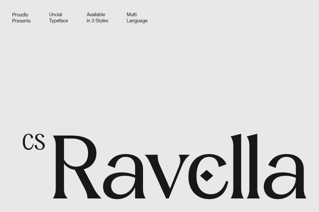 A Timeless Design Companion CS Ravella is versatile enough to adapt across both formal and creative contexts. It’s an excellent choice for logos, magazine spreads, invitations, or any design that calls for tradition with a touch of uniqueness. With its blend of classic elegance and historical strength, CS Ravella elevates every project with timeless sophistication.