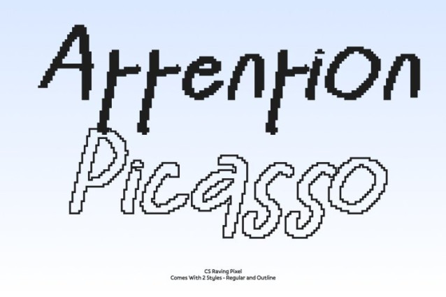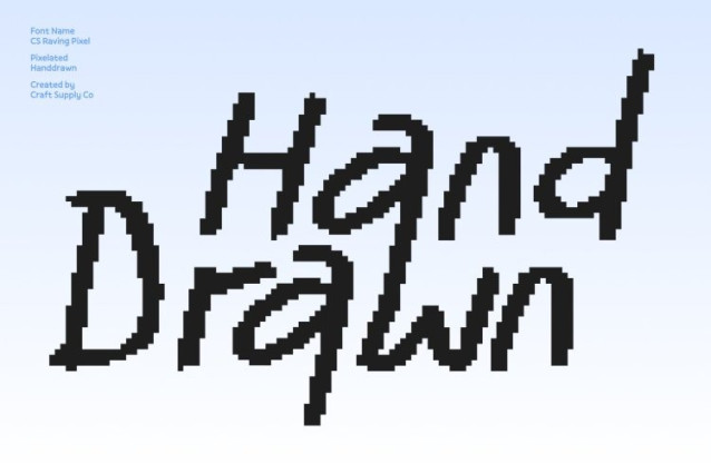 CS Raving Pixel Font This is a messy handwritten display font designed to capture the excitement of free, irregular scribbles. Its uneven strokes and spontaneous forms create a raw, hand-drawn aesthetic that feels expressive, energetic, and full of character. Each letter looks intentionally imperfect, giving your designs an authentic and lively personality.