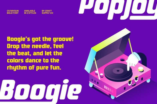 CS Raygun Font is a bold display font built to make a statement. With its strong geometric presence and funky rhythm, this typeface captures attention instantly. Designed for designers who want their message to shout with personality, this font blends confidence, creativity, and bold visual appeal.