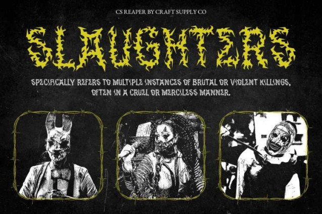 Designed for metal band logos, concert posters, album covers, horror branding, and occult-inspired artwork, CSReaper thrives in dark and chaotic compositions. Whether used for merchandise, extreme music festivals, or gothic-themed visuals, this font ensures a brutal and unforgettable impact.