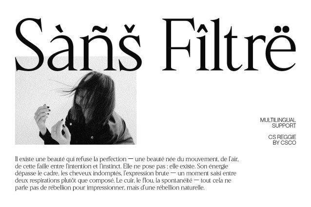 CS Reggie Font – Minimalist Elegance with Modern Sophistication Elegant Serif with Refined Simplicity This is an elegant serif font defined by its refined curves and minimalist design. Its clean, balanced structure brings a sense of calm sophistication, making it a perfect choice for modern designers seeking timeless beauty with a contemporary edge. Each letterform exudes poise and clarity, creating a luxurious visual experience.