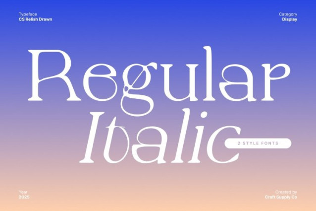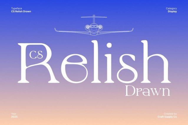 CS Relish Drawn Font Stylish and modern, this chic serif font radiates effortless elegance through its minimal curves and refined structure. Its clean, graceful letterforms create a polished, contemporary look that elevates any design with sophistication and clarity. Each character carries a gentle flow that enhances readability while maintaining a high-end feel.