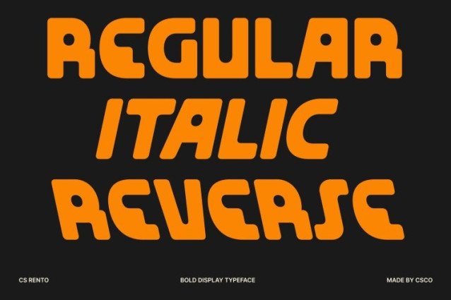 CS Rento Font This is a bold display font built from strong geometric shapes combined with smooth, soft lines. Its unique character designs create a confident visual impact, while the rounded details introduce a calming and approachable feel. This thoughtful balance allows the font to stand out clearly without appearing rigid or aggressive.