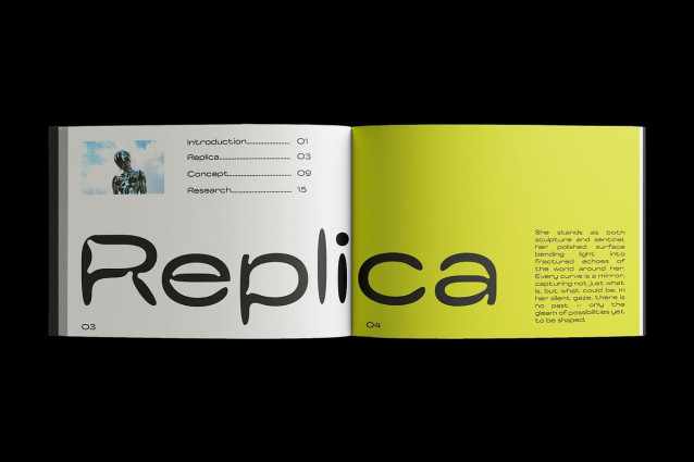 CS Replika Drawn Font is a modern sans serif font featuring clean geometric shapes and precise lines. Its inktrap details add subtle refinement, creating a sleek, professional, and contemporary appearance suitable for a wide range of design applications.