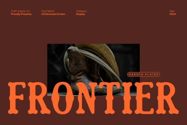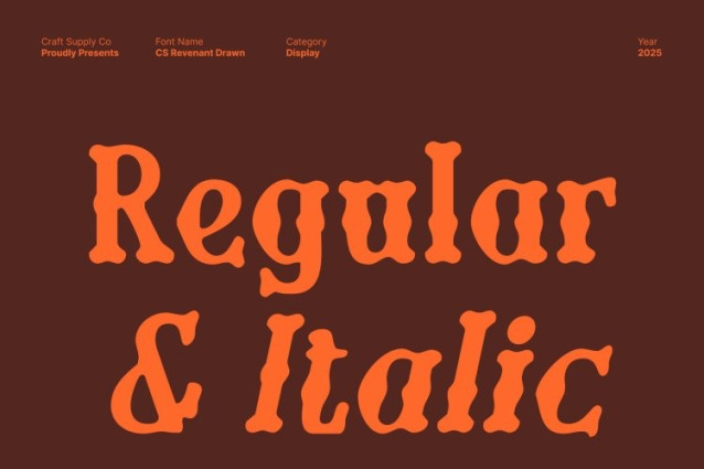 CS Revenant Drawn Font This inspired typeface blends traditional vintage design elements with the classic character of Tuscan serif styles. Its decorative shapes, split serifs, and distinctive details reflect rich cultural heritage and historical craftsmanship, creating a strong sense of authenticity and timeless appeal. Each letter feels ornate yet balanced, making the font visually striking and full of character.