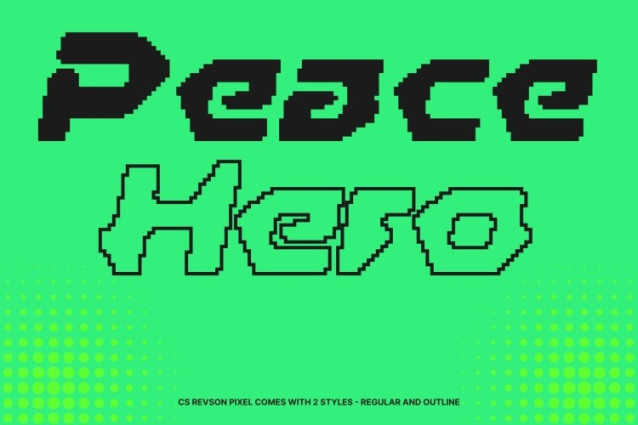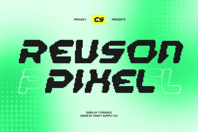 CS Revson Pixel Font This is a futuristic display font built to command attention through bold structure and pixel-driven design. Its strong letterforms and digital construction create an assertive visual impact, making it ideal for projects that demand a forward-thinking, high-energy presence.