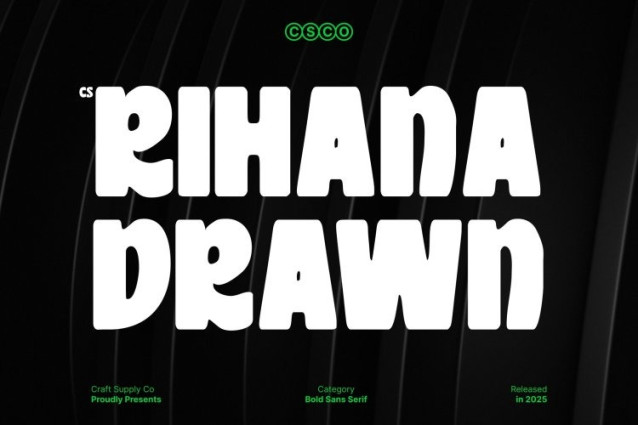 CS Rihana Drawn Font This is a bold modern display font designed to command attention. Its thick, confident letterforms and contemporary styling give any text a powerful presence, making it perfect for projects that require clarity, impact, and strong visual hierarchy.