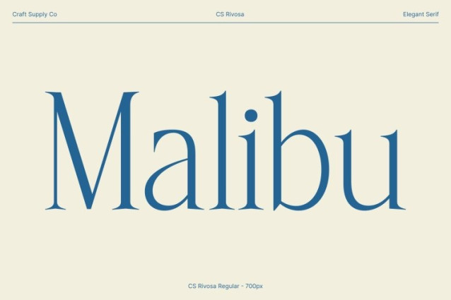 CS Rivosa Font – This is an elegant serif font crafted with refined curves and beautifully elongated details, creating a graceful and high-end aesthetic. Each letterform is thoughtfully shaped to convey sophistication, making the font feel timeless yet contemporary. Its polished structure enhances every composition with a sense of beauty and exclusivity.