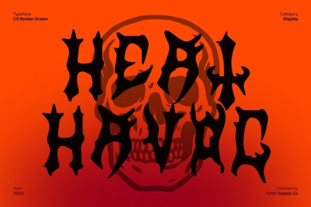 Blending heavy metal style with hand-drawn artistry, this font offers a typeface that’s both aggressive and expressive. Its commanding presence, dynamic textures, and intense personality make it a go-to font for designers aiming to create striking, memorable, and rebellious visual statements.