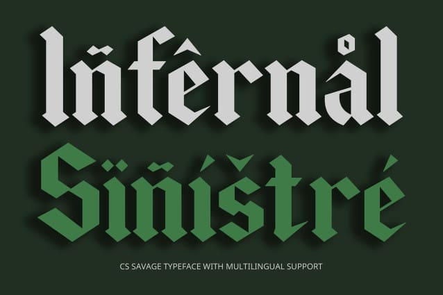 Vintage Feel with Classic Elegance Featuring a rich blend of historical and decorative elements, CS Savage offers a vintage charm that adds depth and character to your designs. The font’s sharp angles and ornate details create a sense of timeless elegance, ideal for projects that require a touch of historical sophistication. Its classic appeal is perfect for evoking a sense of grandeur and tradition, making it suitable for a range of design applications.