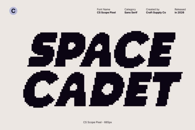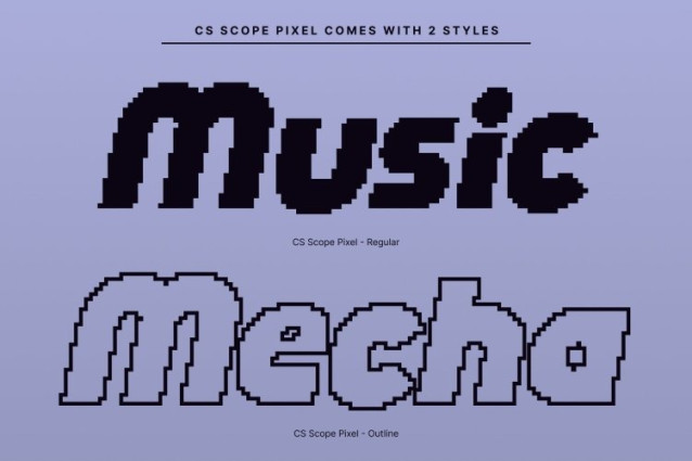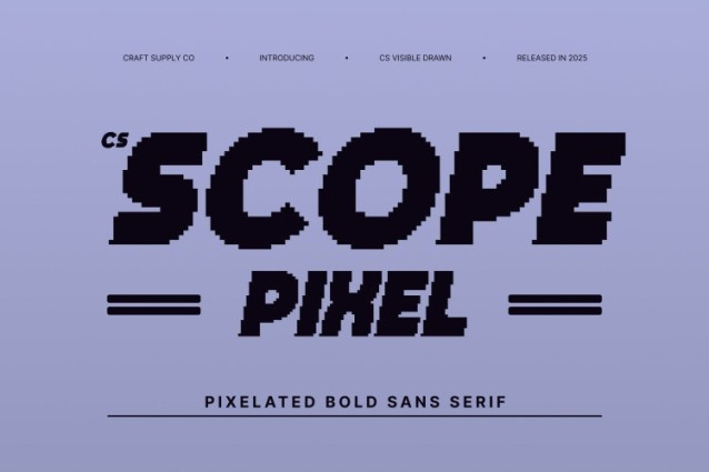 CS Scope Pixel Font This is a bold display font created to command attention instantly. Its heavy weight and solid construction ensure maximum visual impact, while pixel-based detailing adds a distinctive old-digital texture. This combination makes the font feel powerful, eye-catching, and rooted in retro screen aesthetics, perfect for designs that need to stand out boldly.
