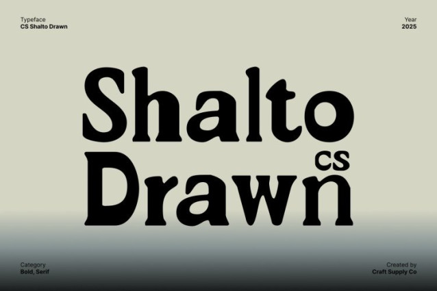 CS Shalto Drawn Font This font brings timeless charm to modern design through its bold, nostalgic serif style. Inspired by classic retro typography, this font blends sturdy shapes with playful curves, creating a warm and expressive character. Its vintage energy instantly evokes the spirit of old-school posters, signage, and branding from past eras.