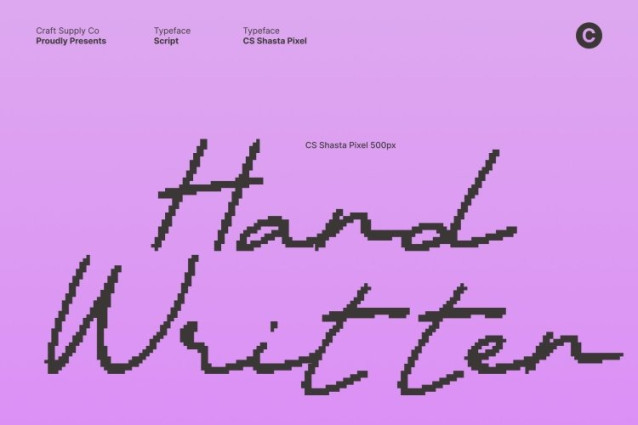 CS Shasta Pixel Font This is a handwritten script font crafted to capture the graceful flow and charm of an authentic personal signature. Its smooth, fluid strokes create a natural rhythm that feels intimate, refined, and expressive. Designed to evoke sophistication with a handcrafted touch, this font brings warmth and individuality into every word.