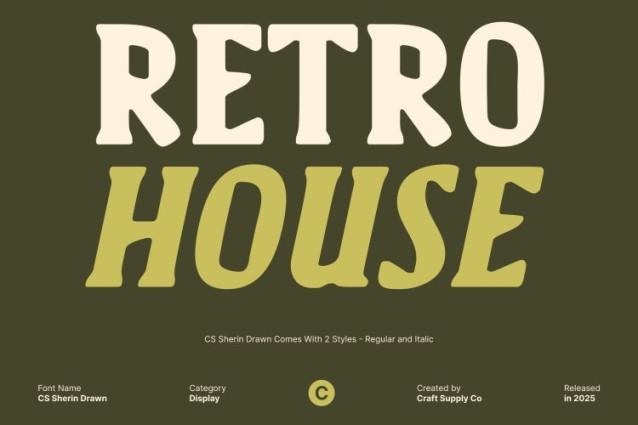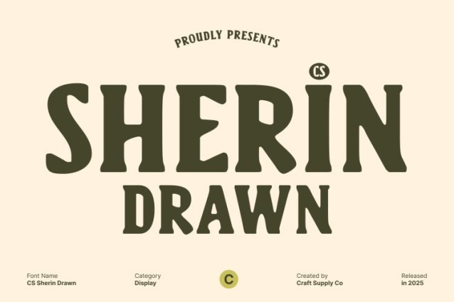 CS Sherin Drawn Font This is a modern serif font defined by bold lines and a clean, contemporary structure. Its strong letterforms project confidence and clarity, making it an excellent choice for professional design environments. The balanced proportions and crisp construction ensure high readability while delivering a modern, authoritative presence that feels reliable and refined.