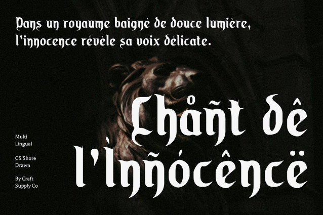 Aesthetic of Strength and Mystery This font thrives on dramatic contrasts structured Gothic boldness paired with imperfect, organic strokes. The result is a typeface that feels timeless yet experimental, ideal for evoking emotion and narrative through typography.