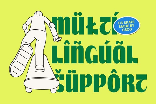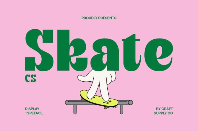 CS Skate Font – This is a bold display font designed to make a statement. Combining the strength of modern sans serif structure with the elegance of Art Nouveau curves, this font commands attention while maintaining a graceful flow. Every letter is crafted with purpose, creating a perfect harmony between boldness and beauty.