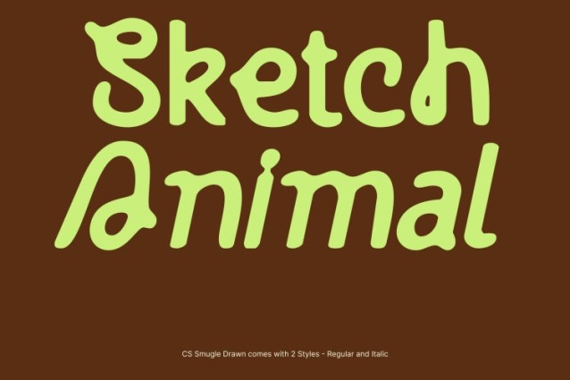 CS Smugle Drawn Font This is a playful experimental sans serif that turns every letter into a work of art. Its hand-drawn effect gives each character unique irregularities and organic texture, adding a lively, inventive quality. The font’s cheerful, unconventional style makes every word stand out with personality and movement.