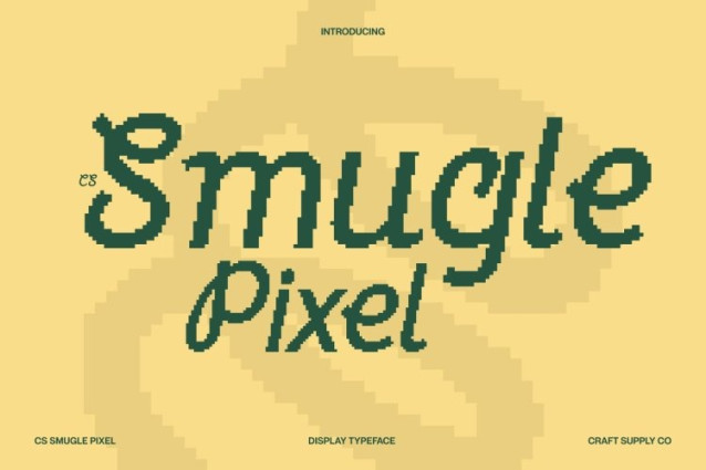 CS Smugle Pixel Font This is a modern experimental sans serif font that stands out through its unconventional shapes and subtle pixel-inspired detailing. Each letter is uniquely constructed, blending geometric clarity with digital irregularity to create typography that feels fresh, lively, and full of personality. The pixel accents add texture and rhythm, making every word visually engaging.