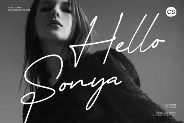 CS Sonya Font This is a signature script font designed to capture the personal and unique character of handwritten signatures. Inspired by natural pen movement and fluid writing, this font delivers an authentic handwritten feel that adds individuality and charm to any design. Its smooth flow and confident strokes create a refined presence, making perfect for projects that value personality and sophistication.