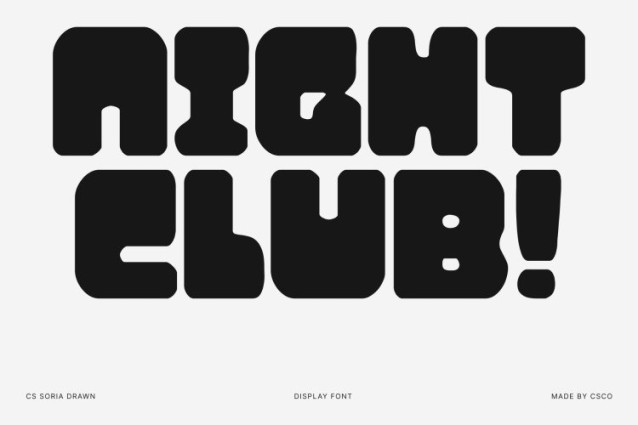 CS Soria Drawn Font This is a stylish display font inspired by the vibrant aesthetics of the early 2000s. Its confident, thick shapes and sleek design echo the futuristic optimism of the Y2K era, where digital meets daring. Each character bursts with attitude, while the subtle drawn texture adds a handcrafted, artistic touch, giving the typeface a unique, dynamic personality.