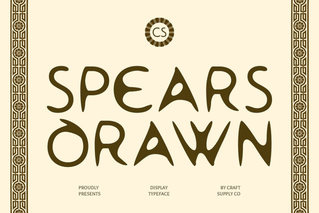 CS Spears Drawn Font – This Font takes inspiration from ancient manuscripts, translating their timeless character into a modern display typeface. With its uncial-style sans serif structure, the font conveys tradition and authority while remaining approachable and versatile. The letterforms capture a sense of heritage, making it ideal for projects that want to connect with classical aesthetics.