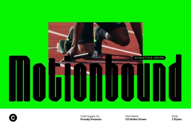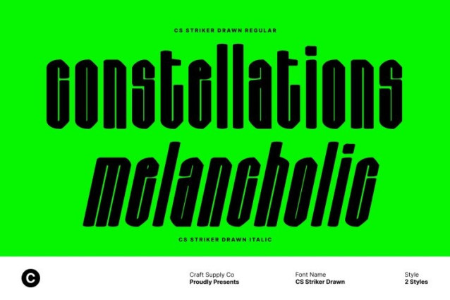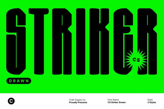 CS Striker Drawn Font – This is a condensed sans serif font designed to deliver maximum impact within limited space. Its tight proportions and strong construction create a bold, modern appearance that feels confident and assertive. The compact structure allows designers to fit more characters without sacrificing clarity, making it highly effective for layouts that demand both efficiency and visual power.