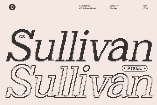CS Sullivan Pixel Font This is a modern serif font that merges professional confidence with contemporary clarity. Its clean, slender serifs and refined structure are enhanced with subtle pixel-inspired detailing, creating a distinctive fusion of classic typography and digital sharpness. Every letterform is crafted with precision and balance, offering sophistication with a modern edge.