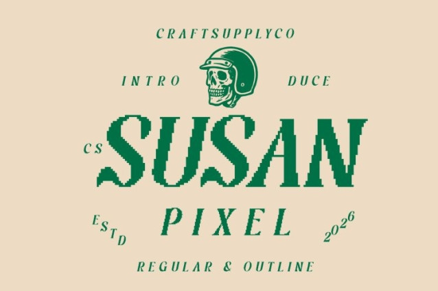 CS Susan Pixel Font This is a stylistic serif font that harmoniously blends modern sensibility with classic elegance. Built upon refined serif foundations, it introduces subtle pixel-inspired detailing that adds a contemporary digital nuance. The result is a sophisticated typeface that feels timeless yet visually distinctive, allowing creativity to shine through every carefully crafted letterform.