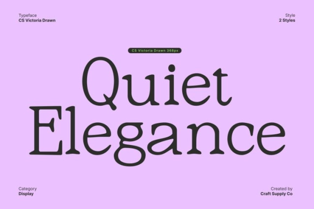 CS Victoria Drawn Font This is a modern serif font that embodies a refined sense of style and sophistication. Its clean lines and balanced proportions give it a professional and authoritative presence, making it ideal for logos, titles, headlines, and other high-impact design applications. The font’s modern structure combines elegance with clarity, ensuring every design communicates confidence and style.