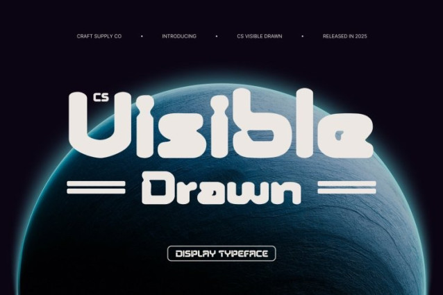 CS Visible Drawn Font This is a techno-inspired sans serif font that embodies strength, clarity, and modern energy. Built on sleek geometric construction and confident proportions, it delivers a futuristic visual presence. The drawn effect introduces subtle organic imperfections, adding character and uniqueness while preserving its sharp, high-tech attitude.