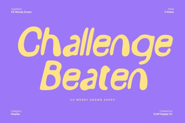 CS Wendy Drawn Font This is a lively display font built from hand-drawn, etchy strokes and wavy, uneven letterforms. Its irregular shapes and sketch-like construction create a funky, cheerful personality that instantly feels playful and expressive. The organic lines give the font a spontaneous look, making every word feel animated and full of charm.