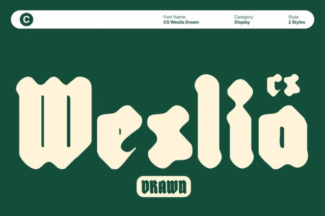 CS Weslia Drawn Font This is a striking gothic display font that blends the sharp intensity of classic gothic typography with clean, modern proportions. Its tall letterforms, dramatic vertical emphasis, and refined flourishes preserve the heritage of gothic design while introducing a more structured and contemporary feel. This balance makes the font bold and expressive without feeling overly ornate or outdated.