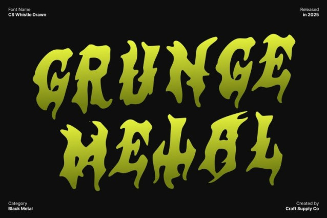 This font combines raw design with expressive texture, perfectly embodying the spirit of extreme music. It transforms conventional letterforms into a bold, chaotic, and artistic display. Designers can rely on it to convey intensity, rebellion, and energy, making every project unforgettable and visually impactful.