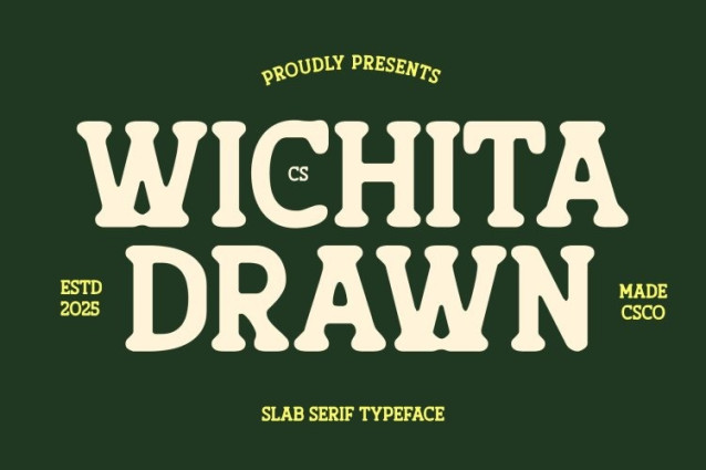 CS Wichita Drawn Font This is a modern slab serif font that combines structured, clean design with a subtle drawn effect. Its sturdy serifs and well-proportioned letterforms deliver a confident, contemporary impression, while the hand-drawn texture adds personality and uniqueness to each character. The result is a typeface that feels both professional and approachable.
