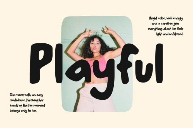 Blending modern simplicity with whimsical energy, this font adapts easily across creative themes. Whether used for logos, headlines, or titles, it stands out with personality while maintaining a warm, inclusive, and approachable tone.