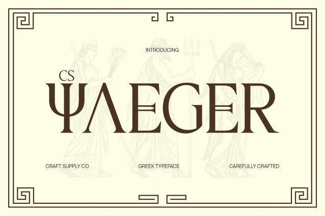 CS Yaeger Font – Classical Strength with Modern Refinement Inspired by Ancient Greek Elegance This is an elegant serif display font inspired by the timeless beauty of ancient Greek letterforms. It captures the essence of historical grandeur through its strong serifs and sculptural shapes, while reimagining them for the modern era. Each letter carries a sense of heritage and balance, evoking both artistry and authority.