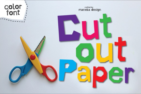 Cut Out Paper Display Font is a crafting-themed color font with a cutout paper style, including uppercase and lowercase, numeric, and punctuation.