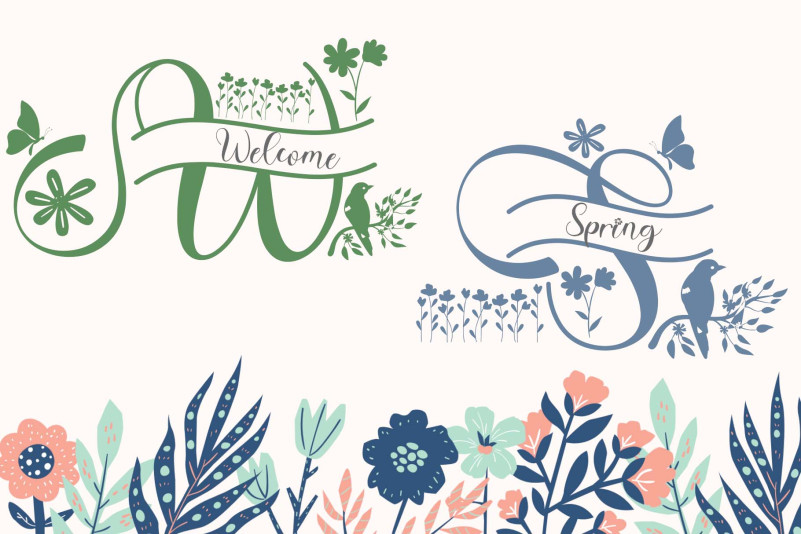 “Cute Spring Monogram” is a handwritten font made into a monogram. Decorated with birds, flowers, and butterflies. This font is equipped with monograms, upper- and lower-case letters, swashes, titling, numerals, punctuations, and multilingual support.