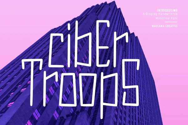 Cybertroops Font is a square letterform concept as mono handwritten display font. With light mono-line stroke, fun character with a bit of ligatures. To give you an extra creative work. Cybertroops font support multilingual more than 100+ language. This font is good for logo design, Social media, Movie Titles, Books Titles, a short text even a long text letter and good for your secondary text font with sans or serif. Make a stunning work with Cybertroops font.