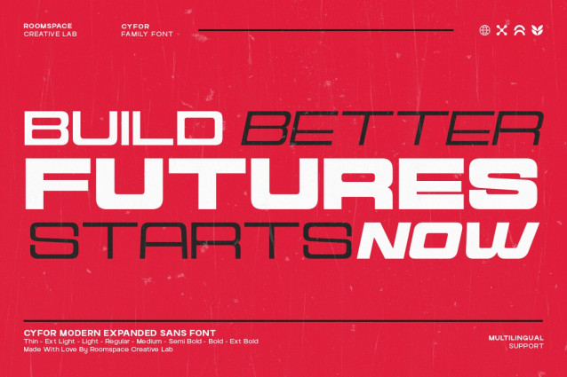 Cyfor Font is a modern expanded sans-serif font family crafted with bold futuristic energy. Its wide geometric structure and clean curves bring a powerful visual presence to logos, posters, websites, and tech-driven layouts. Designed with 16 carefully built weights, Cyfor adapts beautifully to modern digital aesthetics from sci-fi interfaces to minimalist branding systems.
