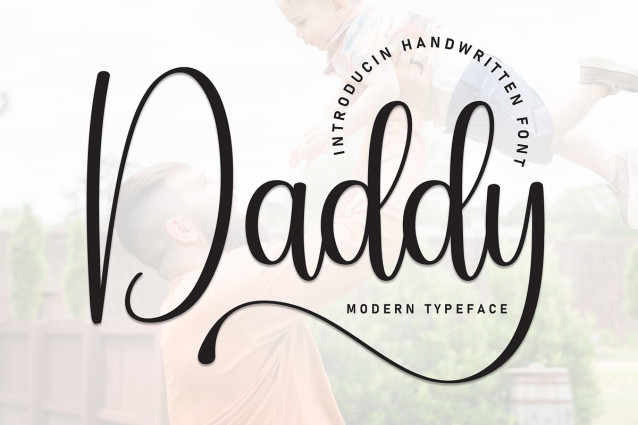 Daddy Typeface A popular and professional script font. Modern and elegant, this typeface is made of beautiful creative strokes.