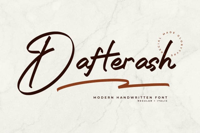 Dafterash Script Font is a flowing handwritten font, described by an elegant touch, perfect for your favorite projects. Fall in love with its incredibly distinct and timeless style and use it to create spectacular designs!