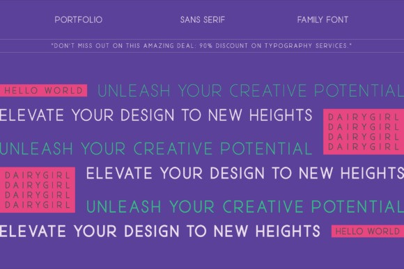 Dairygirl Font Family, a meticulously crafted sans-serif font family that redefines modern design. Featuring 5 distinct weights, it offers unparalleled versatility, seamlessly adapting to projects ranging from magazines and logos to film posters and beyond.