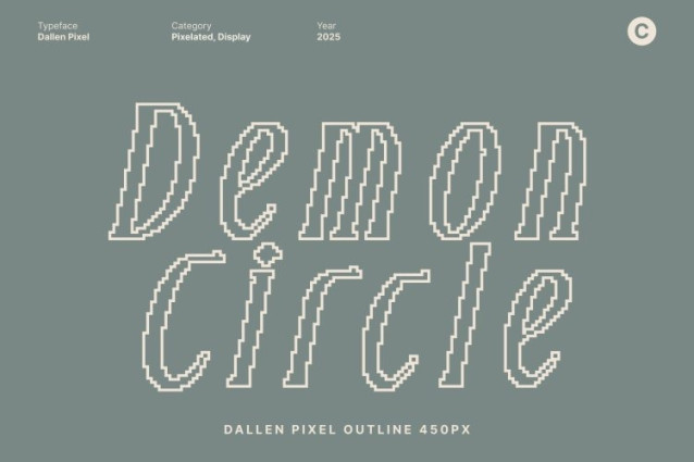 Dallen Pixel Font This font blends the iconic charm of Art Deco design with the pixel styling, creating a refined yet modern display typeface. Its slim, streamlined forms echo the glamour and geometric precision of early 20th-century design, while the pixelated execution adds a fresh, digital twist.