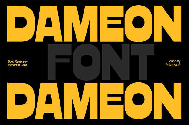This font is used only for demos (Demo license). If you want to use this font for commercial use please contact: https://creativemarket.com/pekotype/291995582-Dameon-Bold-Reverse-Contrast-Font