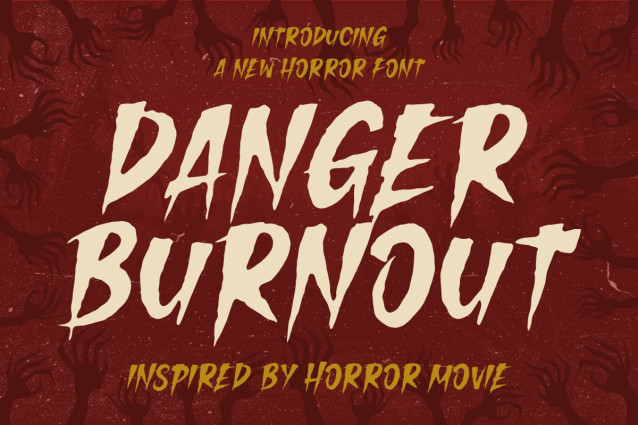 Danger Burnout Font is a spine-chilling horror movie font designed to invoke fear, suspense, and cinematic thrill. Its sharp, jagged strokes mimic the scratchy, chaotic feel of panic and terror, making it perfect for horror titles and Halloween-themed designs. Each letter appears as though it’s been torn or clawed onto the screen, enhancing the sense of urgency and danger. The uppercase and lowercase characters are bold and irregular, allowing maximum visual drama and readability even from a distance. The font is inspired by classic horror aesthetics, enriched with distressed elements and blood-dripping edges.