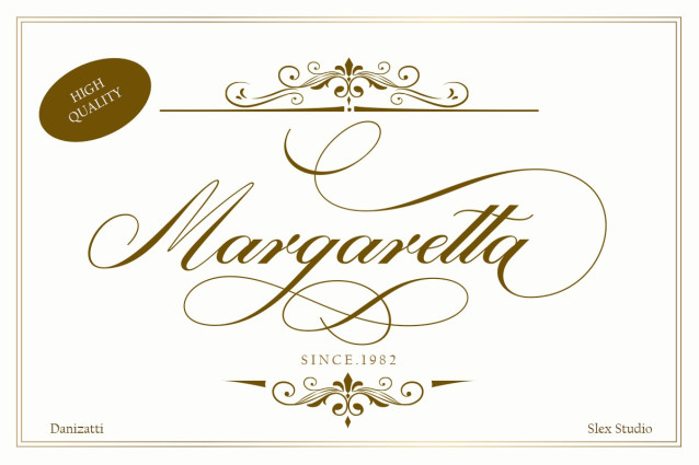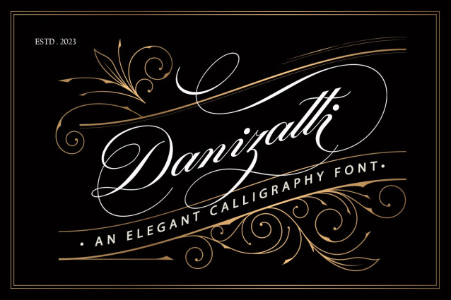 Danizatti Font, a kind of classic decorative script with a modern twist. This is a display font intended for vintage logos, fashion labels, custom card headers, badges, food packaging designs, especially wine labels. Actually a lot of great style was consumed when creating this type 🙂 there are 300 fancy letter and punctuation glyphs. I also offer a number of viable stylistic alternatives for multiple letters.