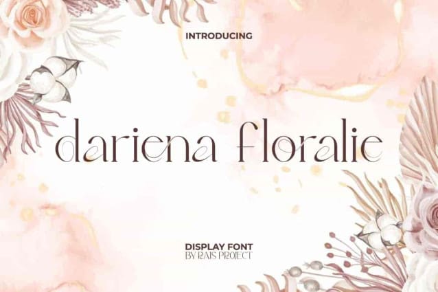 Dariena Floralie Font is an adorable stunning aesthetic serif display font, created by RaisProject. It will look good on invitation, stationery, poster, custom design, product packaging, quotes, signage, brand image, advertisement, label, marketing material, website page, and more!