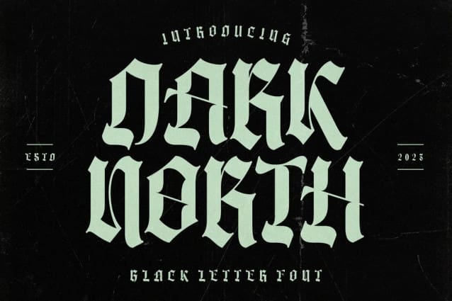 Dark North Font is a modern and casual display font with an incredibly friendly feel. This font comes with a blackletter feel but has a clean and modern style. Comes with a full uppercase, lowercase, numbers, punctuation and with extensive language support, it’s going to be a very usable addition to your project. Whether you’re looking for fonts for various projects like logos, blog titles, branding, packaging, barber shop, fashion, invitations, greeting cards, posters, business cards, clothing, letters, stationery, and more Dark North Font will turn any creative idea into a true piece of art!