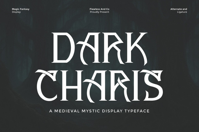 This font is used only for demos (Demo license). If you want to use this font for commercial use please contact: https://creativemarket.com/Flawlessandco/291771916-Darkcharis-Mystic-Display-Font?u=fontlot123